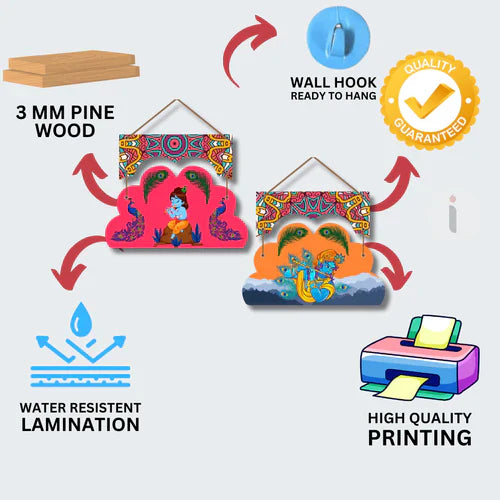 Crafted from premium MDF wood with high-definition printed detailing, this set features vibrant colors and intricate designs that reflect both traditional devotion and modern elegance. Whether placed in a temple room, meditation corner, living area, or office, it creates a serene and spiritually uplifting atmosphere.