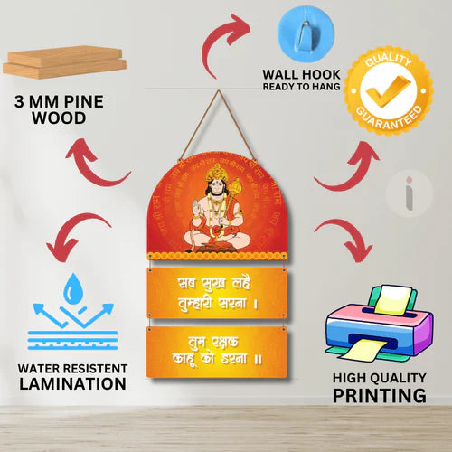 Infuse your surroundings with divine power and sacred energy through this beautifully designed Lord Hanuman Wall Hanging. Featuring a bold depiction of Hanumanji accompanied by his sacred mantra, this piece stands as a spiritual tribute to faith, courage, and protection.