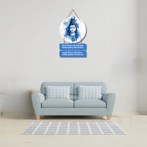 The circular design in deep blue hues symbolizes infinity, wisdom, and divine energy, making it a striking spiritual centerpiece. Crafted from premium MDF wood with a high-quality printed finish, this décor piece blends traditional devotion with modern artistry, making it perfect for pooja rooms, meditation corners, yoga studios, or as a sacred gift.