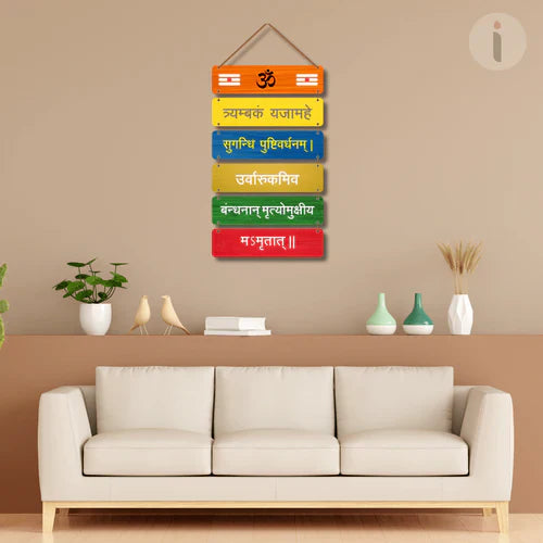 Expertly crafted from premium MDF wood with a smooth printed finish, the design highlights the mantra in traditional script, blending visual elegance with deep spiritual significance. Ideal for creating a calm and uplifting atmosphere in your pooja room, meditation corner, home entrance, or office.