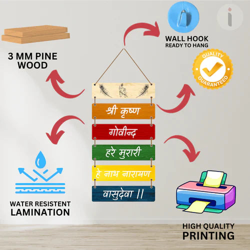 Shree Krishan Govind Hare Murari Wooden Wall Hanging