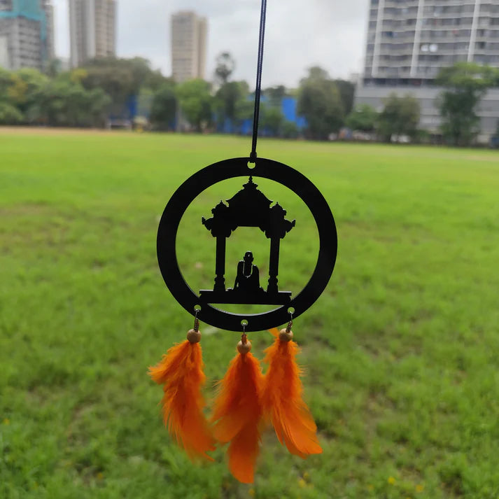 Shree Swami Samarth Acrylic Car Hanging with Divine Feather Detailing
