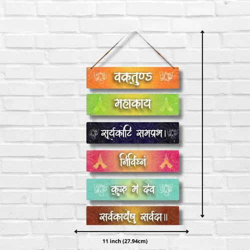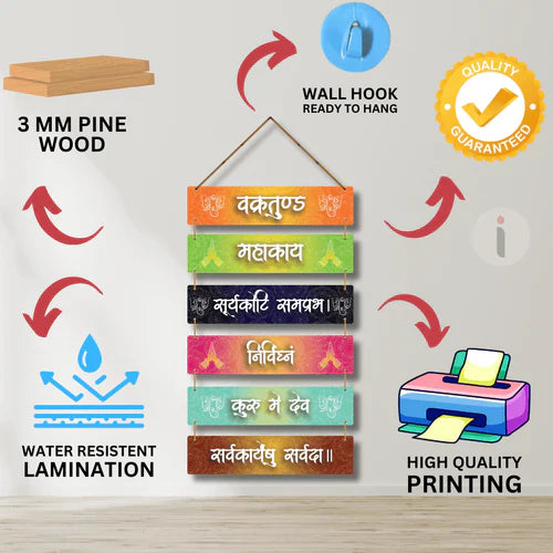 Invoke the blessings of Lord Ganesha, the remover of obstacles and harbinger of wisdom and success, with this beautifully designed Vakratunda Mahakaya Wall Hanging. Crafted on premium MDF wood with intricate detailing, it features the sacred Vakratunda Mahakaya mantra in an elegant script — radiating positivity, clarity, and auspicious energy into your surroundings.